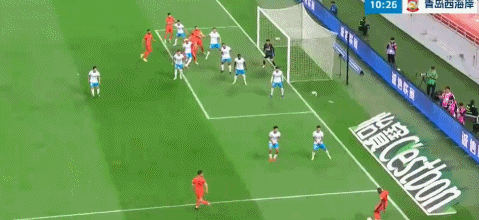 比赛的第10分钟,青岛海牛获得任意球,埃朱马头球冲顶,李昊反应神速,飞身单手一扑,球击中横梁下沿之后反弹,随后被后卫挡出底线。