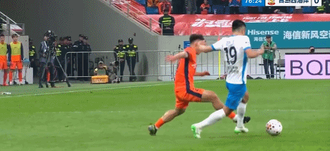 第76分钟,邝兆镭拼抢时绊倒董宇,后者一度被担架抬离球场。
