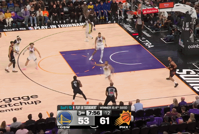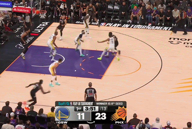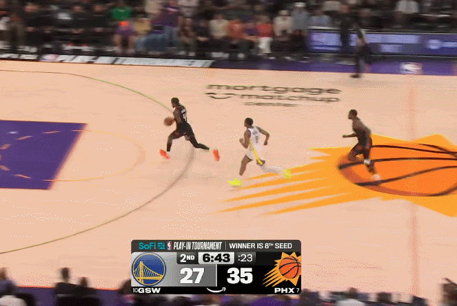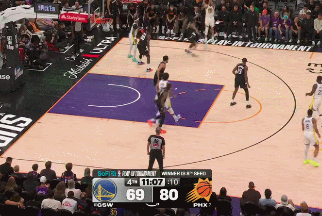 进入末节争夺,布克两罚命中,梅尔顿、库里连中三分追分,关键时刻又是杰伦格林站了出来,不仅连续杀入内线得分,同时外线超远三分也有,始终帮助太阳队占据两位数领先,勇士队苦苦追分无果,体能也随之见底,最终遗憾出局,目送太阳在布克、杰伦格林与狄龙的带领下晋级季后赛。