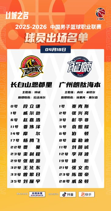 大名单出炉 CBA聚焦 04.1819:09 关注 #CBA[超话]# 【大名单出炉】2025-2026赛季CBA联赛常规赛第四十轮今晚继续进行,4场比赛将在19:35同时跳球。敬请期待!#以城之名# #竞由新生#