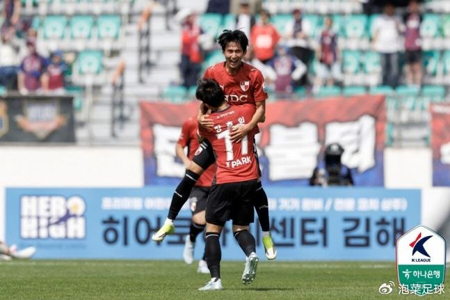 在济州和金泉的比赛中,出现了极其戏剧性的一幕,上半场金泉尚武依靠任意球由朴泰濬直接破门,而下半场济州中场吴在奕用同样的方式还以颜色,最终两粒任意球让比赛平分秋色。1-1的比分,也让金泉尚武赛季继续无胜。