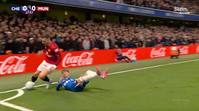 很快,B费罕见地右路突破下底传中,库尼亚门前抢点破门,曼联1-0取得领先。必须强调的是,B费之所以如此顺畅地过人成功,可能主要是因为防守他的切尔西球员,就是加纳乔……