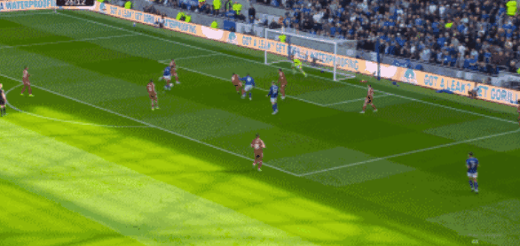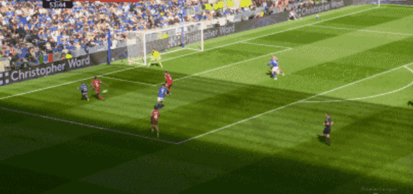 第42分钟,加克波左路内切打门,被埃弗顿门将托出底线。
