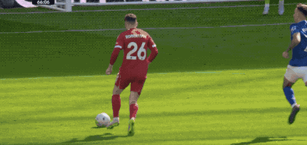 转过头来,仅仅2分钟后,埃弗顿后场连续传递,麦克尼尔的回传被加克波抢断,萨拉赫扯出空位。