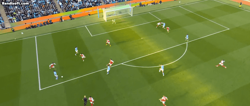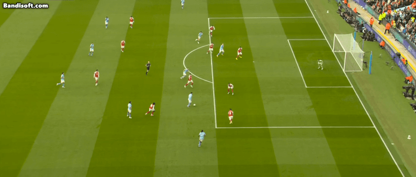 第65分钟,多纳鲁马手抛球发动快速反击,哈兰德接奥赖利传球,抢点射门再次改写比分。阿森纳1-2落后曼城。