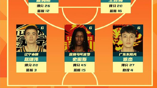 首先,赵继伟凭借在对阵南京同曦队三番战贡献20分3篮板,尤其是在下半场拿下20分率队力克对手,让人看到了逐渐摆脱伤病的他王者归来的雄姿。所以他和天津队的大卫詹姆斯、上海队的王哲林、深圳队的小孩哥史密斯、广东宏远队的徐杰一起入选了第39轮常规赛最佳阵容,实至名归!