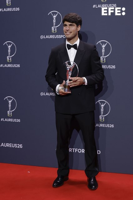 仅仅数月前,阿尔卡拉斯在墨尔本完成职业生涯最后一块拼图,成为男子网坛史上最年轻的职业全满贯得主。如今,这位西班牙名将又添一项重量级荣誉——2026年劳伦斯年度最佳男运动员奖。