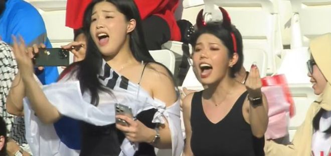 此外,在马宁出示第三张黄牌的时候,看台上还出现了韩国女球迷抗议的画面。