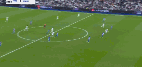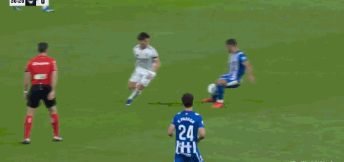 第90+3分钟,阿拉维斯禁区右侧打门被卢宁扑出,皇马禁区内乱战解围不远,格瓦拉外围远射,门前托尼·马丁内斯脚后跟一磕扳回一城,比分改写为2-1