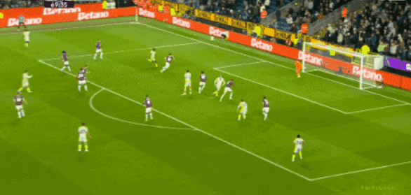 第69分钟,塞维尼奥右路的包抄打门,被伯恩利门将伸腿挡出。