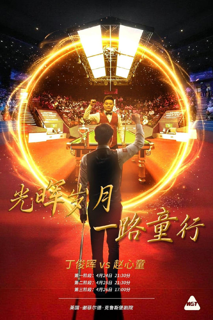 北京时间4月24日,2026斯诺克世锦赛16强战继续进行,克鲁斯堡剧院迎来中国斯诺克史上最重磅德比——39岁的中国斯诺克奠基人丁俊晖对阵29岁的卫冕冠军赵心童。这是两人职业生涯首次世锦赛交锋,也是两代领军人物的直接对话,