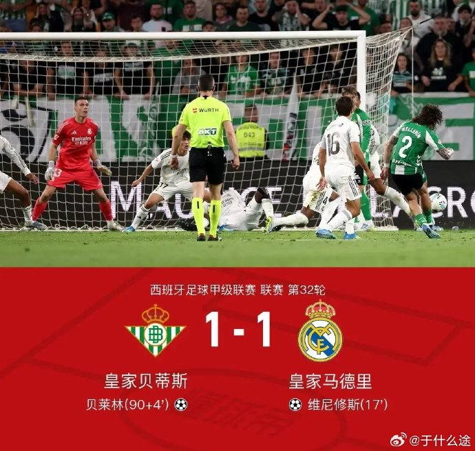 2026年4月25日凌晨的贝尼托·比利亚马林球场,皇家贝蒂斯后卫贝莱林在比赛第94分钟的读秒推射,将比分定格为1-1,用一记绝平进球粉碎了皇家马德里最后的争冠幻想。