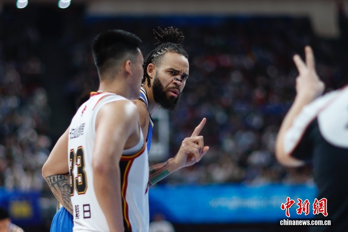 4月24日,在北京举行的2025-2026赛季中国男子篮球职业联赛(CBA)常规赛比赛中,北京北汽队主场105比55战胜长白山恩都里队。图为北京北汽队麦基在比赛中。中新社记者 韩海丹 摄
