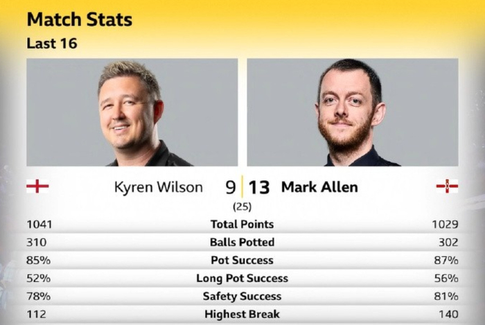 目前,肖恩·墨菲、马克·艾伦率先晋级八强,接下来的1/4决赛,肖恩·墨菲的对手是赵心童与丁俊晖之间的胜者,马克·艾伦的对手是巴里·霍金斯与马克·威廉姆斯之间的胜者。