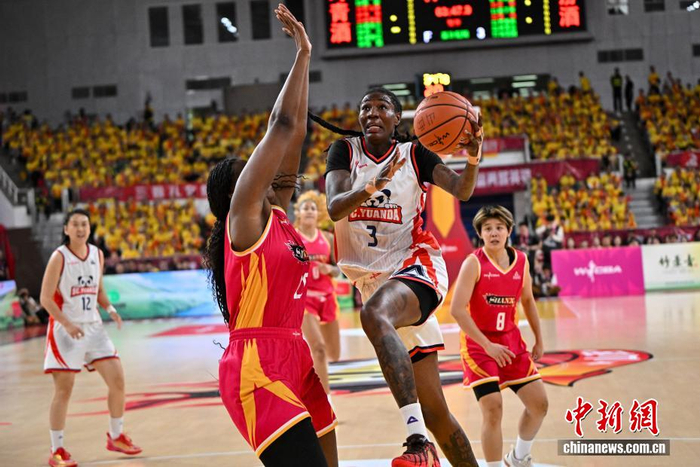 4月25日,山西队球员奥斯汀(红衣)在比赛中持球进攻。当日,在太原举行的2025-2026赛季中国女子篮球联赛(WCBA)总决赛第5轮比赛中,四川蜀道远达队客场以74比65战胜山西竹叶青酒队,以总比分3比2夺得冠军。中新社记者 韦亮 摄