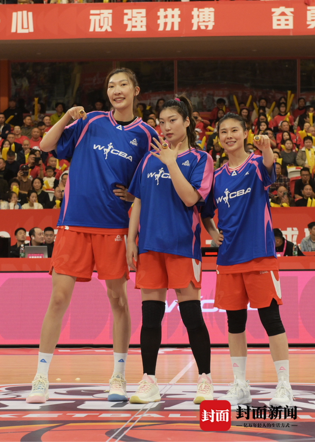 揭幕战开赛前,现场举行了上赛季总冠军戒指和旗帜颁奖仪式。在现场观众的阵阵“雄起”声中,李梦、王思雨、韩旭等上赛季夺得WCBA冠军的四川女篮队员们现场戴上了总冠军戒指。