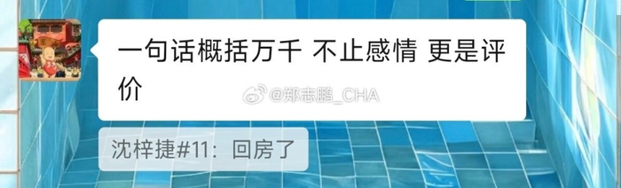 记者郑志鹏分享了原深圳球员沈梓捷对贺希宁的祝福:回房了,一句话概括万千,不止感情更是评价。