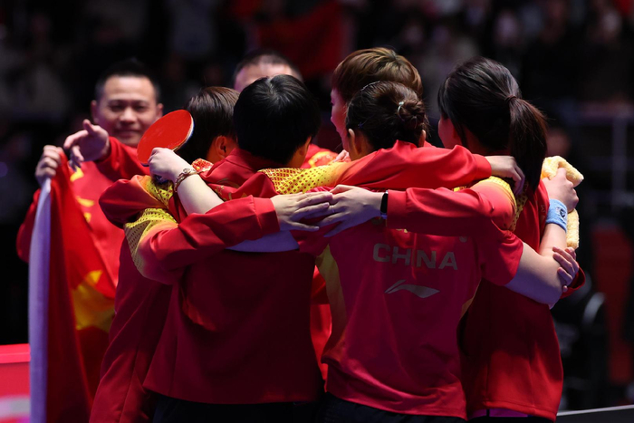 国乒参加此次伦敦世乒赛将身穿新款比赛服和领奖服。在出发机场之前,国乒全队都换上了红色新队服进行合影留念,在男女队集体大合影中,中国乒协主席王励勤站在C位,男女单世界第一王楚钦、孙颖莎分别站在男队主教练王皓、女队主教练马琳旁边。王楚钦右手边依次是林诗栋、周启豪、向鹏和梁靖崑,孙颖莎左手边依次是王曼昱、陈幸同、蒯曼和王艺迪。