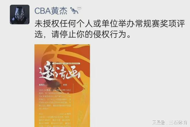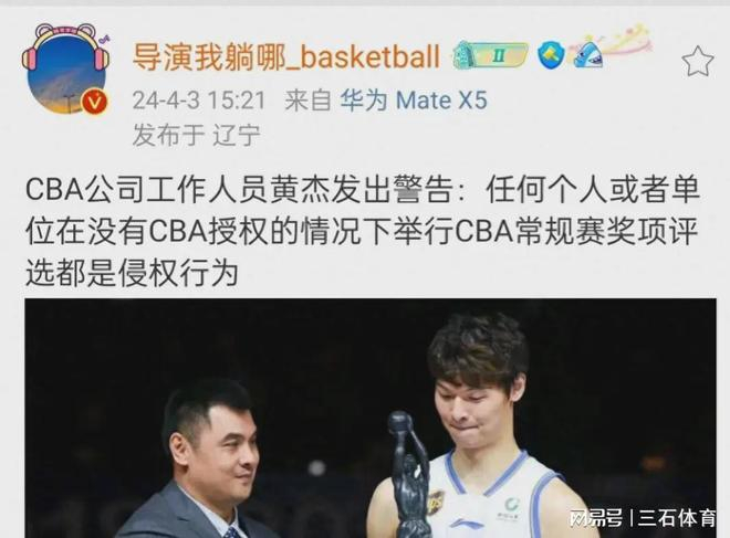 但是据自媒体人导演我躺哪透露,这次CBA联赛官方禁止任何没有授权的媒体和个人发起奖项的评选活动,如果有的话都属于侵权行为。