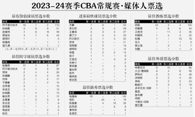 《体坛周报》评CBA常规赛各大奖项,并表示此活动险些被搅黄