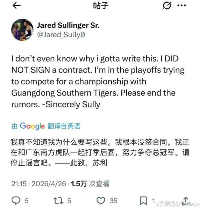 不过对于这则流言,萨林杰在社媒亲自辟谣,他称自己根本没签合同,正在和广东一起打季后赛,努力争夺总冠军。这也让不少广东球迷稍微舒了一口气,如果萨林杰真的和波多黎各联赛签约,一旦广东在季后赛陷入被动,他恐怕真的会破罐子破摔,想着早早结束CBA联赛,去波多黎各挣钱。