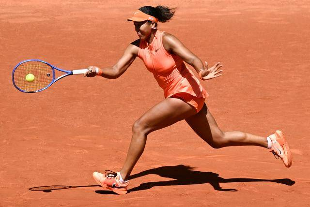 ↑ 日本选手大坂直美在比赛中回球。
