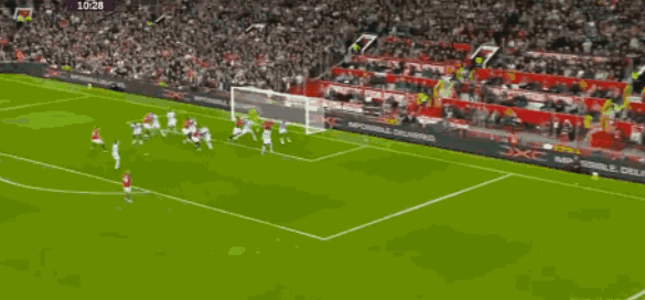 比赛刚刚开打,曼联就创造出了一次绝佳的破门机会,迪亚洛禁区左侧面对半空门没有把握住,射门被范登贝尔赫挡出,不过红魔还是在第11分钟就打破了场上的平衡,右侧角球开出后,马奎尔头球摆渡,后点的卡塞米罗头球接力破门,帮助曼联取得了1-0的领先,本赛季联赛直接参与11粒进球,也创造了胖虎生涯新高。