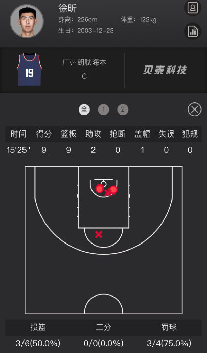 面对老东家砍下13分11篮板3助攻3盖帽,半场已贡献9分9篮板,防守端迫使广东频繁远投。