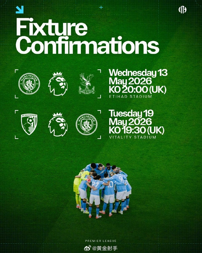 尽管这可能对曼城的夺冠前景造成沉重打击,但英超联盟拒绝了曼城希望调换对阵水晶宫与伯恩茅斯比赛顺序的请求,该请求本可以让他们多获得一天的恢复时间。