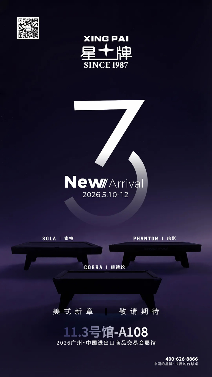 2026年5月10日-12日,第20届世界台球及配套设施展(原广州国际台球展)重磅启幕!中国星牌39年行业标杆,携全系列王牌产品与球星天团,强势登陆羊城!