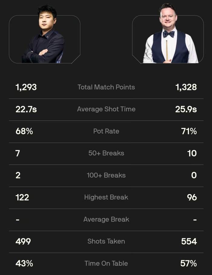 在本场比赛之前,赵心童在双方9次交手中以3胜6负处于下风。在本场比赛中,赵心童虽有顽强的表现却遗憾出局。
