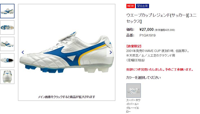 目前Wave Cup的复古款已在美津浓官网出售,售价为27000日元(约人民币1648元),目前已经断货。