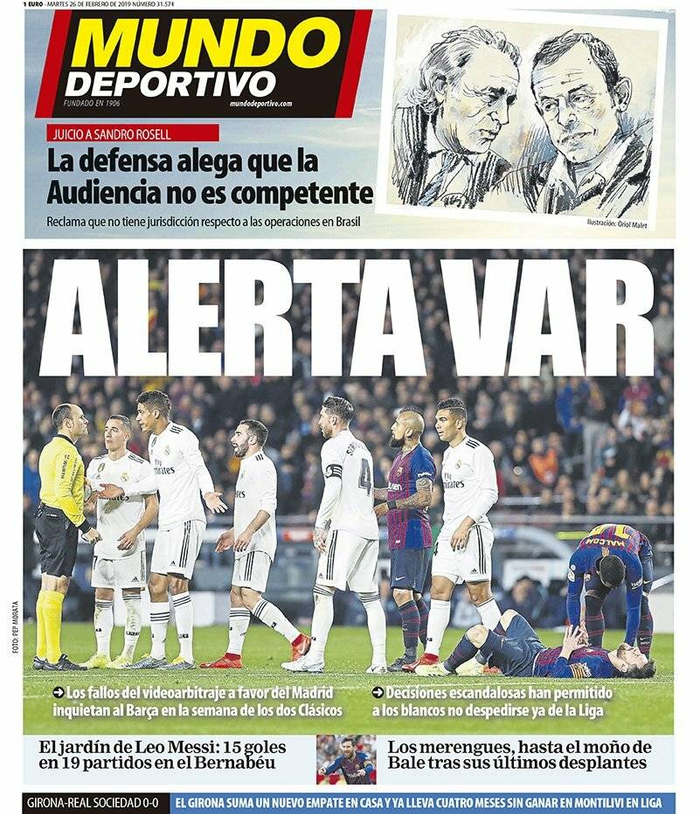 西甲今日头版:皇马解决贝尔事件 巴萨警惕VAR判罚