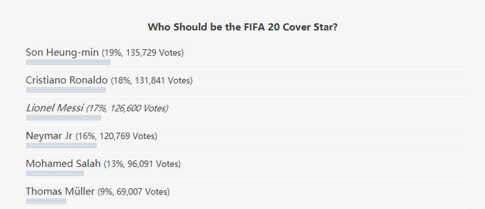FIFA20封面人物票选:孙兴慜暂居首,C罗梅西分列二三