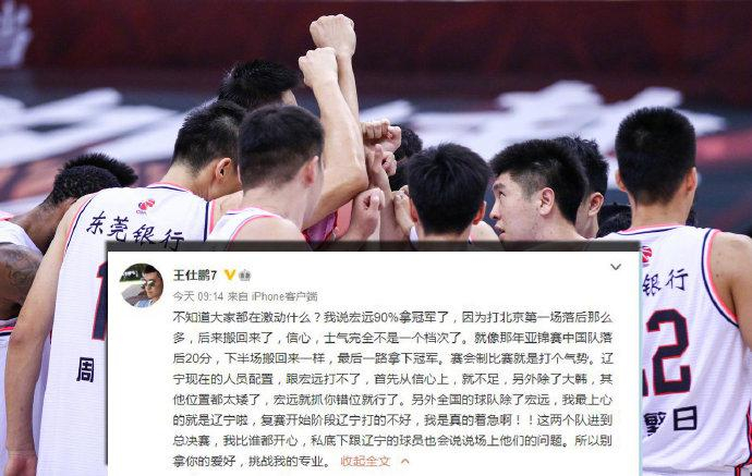 @竹林散仙:辽宁的表现有点让人失望,他们没有把最强的广东给逼出来,北京当时是做到了的。广东全场一直很从容的轮换球员,辽宁主力打的时间却很长。尤其是韩德君,我都替他累。如果不是阿联受伤病影响,状态太差,广东早就打卡下班了。广东靠赵睿、周鹏、威姆斯就把辽宁彻底击溃。相比广东和北京的半决赛,这场的强度差了太多,这不是我想象中的总决赛。。