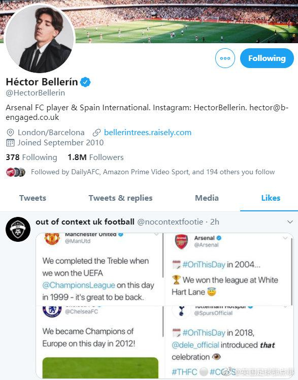 贝莱林刚才点赞了一条推特