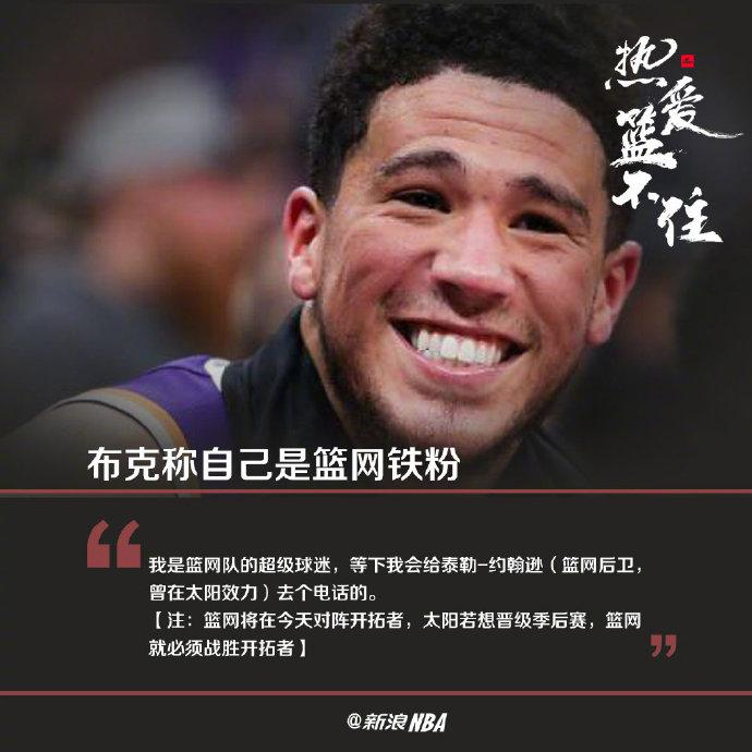布克称自己是篮网铁粉