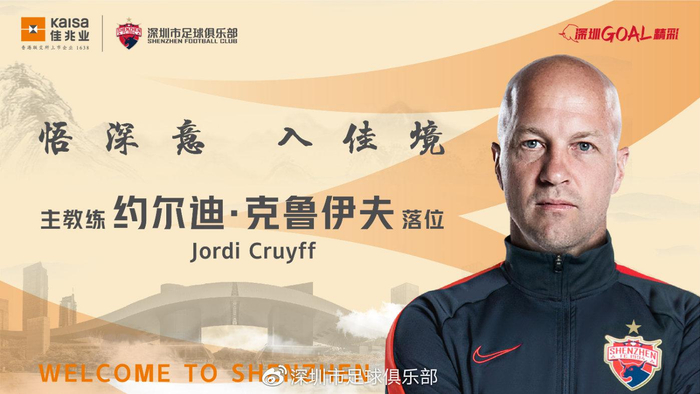 北京时间8月14日,深圳市足球俱乐部通过微博宣布约尔迪·克鲁伊夫担任深圳佳兆业队主教练。