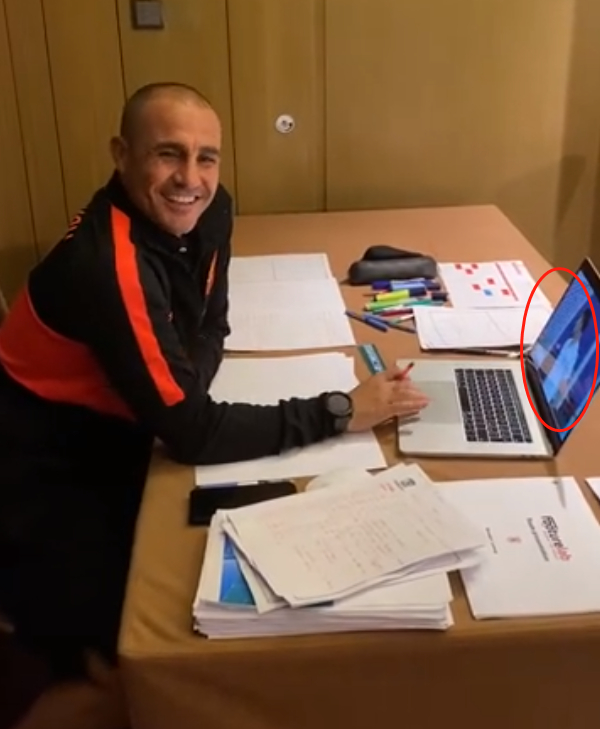 值得一提的是,李白无意之间拍到卡帅正在着重研究山东鲁能U23小将郭田雨。卡帅的反应也堪称神速,在看到摄像镜头后,马上用白纸挡住下面写了字的纸,不知道上面有什么“机密”。
