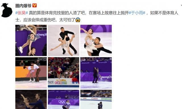 他被曝出在比赛场上“故意摔女伴”,由于是娱乐圈事件,又蹭上了所谓“女权”的热度,导致这事件迅速成为了焦点。名为“圈内爆爷”用了一些大赛的GIF来证明他的观点,直言张昊是“人渣”,让张昊目前被不少网友攻击。