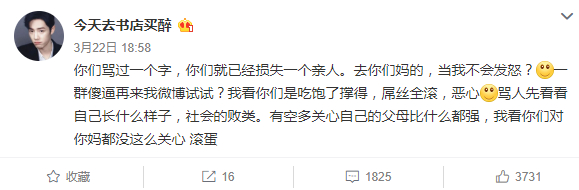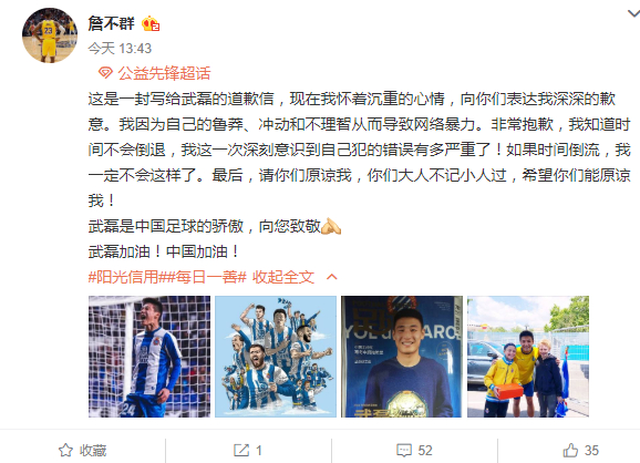 随后发布微博辱骂球迷:
