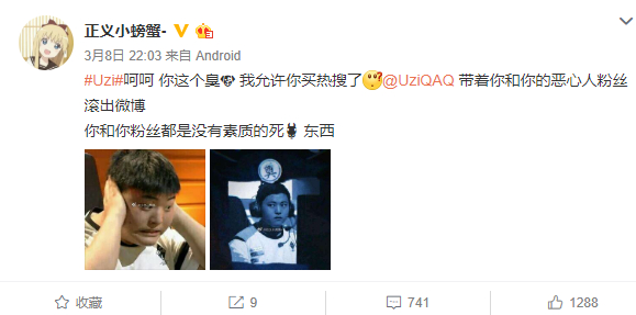 与此同时,在“正义小甜螺”那条微博下,也出现了自称肖战粉丝的恶毒评论,再加上肖战在3月份以来陷入了舆论旋涡中,于是战火向另一边迅速蔓延。