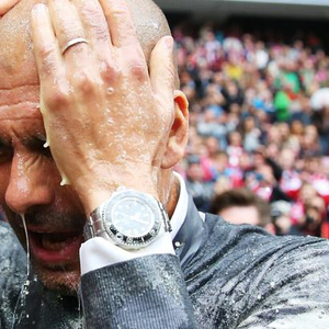资料图:瓜帅德甲夺冠庆典上被泼