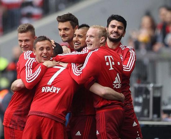 比达尔换下格策。最后阶段,桑布拉诺和贾克帕先后抽筋倒地,但法兰克福已用完换人名额。拜仁最终1比0小胜,德甲对阵法兰克福757分钟不失球,打破2003-09年门兴对比勒费尔德669分钟不失球的德甲纪录。