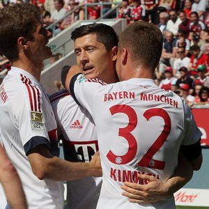 北京时间5月7日21时30分(德国当地时间15时30分),德甲倒数第2轮所有场次同时开球,拜仁客场2比1击败因戈尔施塔特,领先多特蒙德8分,提前1轮夺得本队第26个德甲冠军,成为德甲首支4连冠球队。莱万梅开二度,以29球追平外籍球员德甲单赛季纪录(亨特拉尔2011-12赛季29球)。多特蒙德客场0比1负于保级队法兰克福;勒沃库森客场1比2负于门兴。