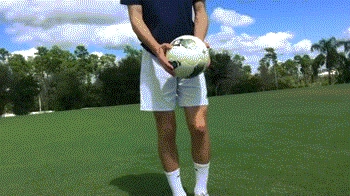 对于颠球的初学者来说,最大的问题是在开始颠球的时候,球很容易颠飞出去,所以为了解决这个问题,我们通常用手给球施加后旋,在颠球的时候,也要维持球的后旋状态,这样你会发现情况会有所好转。