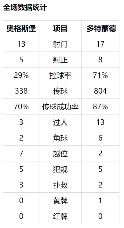 上半时多特仅1次射正。下半时开始19秒,多特再丢一球!阿坎吉头球解围不远,里希特右肋断球距门25米处轰门入远角,2比0。