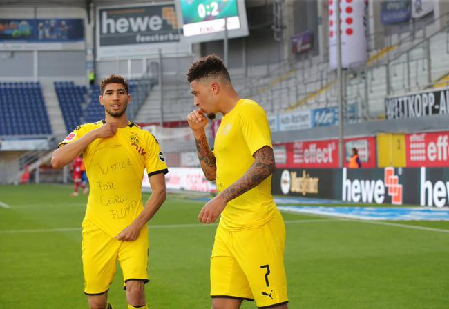 仅过3分钟,德莱尼直传禁区左侧,布兰特低传后点,桑乔在门前3米处推进空门,2比0。桑乔脱下球衣,露出内衣上写的“为乔治-弗洛伊德伸张正义”,被黄牌警告。