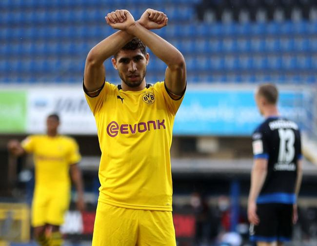 哈兰德膝伤缺阵,达胡德更因膝伤提前告别赛季,埃姆雷-詹和桑乔顶替出场。开场后,帕德博恩连续获得反击机会,安特维-阿杰伊禁区右侧不是打偏就是打高。皮什切克后场长传,小阿扎尔禁区右侧小角度射门被青格勒封出。霍尔特曼分球,安特维-阿杰伊禁区左侧小角度打高。