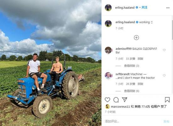 直播吧7月16日讯 在德甲联赛结束之后,多特全队目前都已经进入了假期,挪威19岁新星哈兰德也开始了自己多姿多彩的“暑假”:在此前被赶出夜店之后,他今天晒出了与父亲一起在田地中驾驶拖拉机的照片,并表示自己正在“工作”。